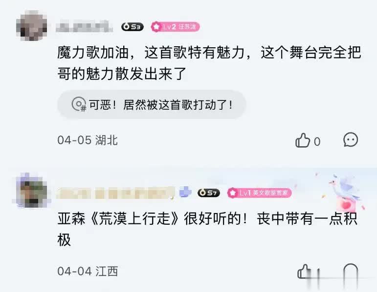 亚森用不羁而深情的嗓音演绎的那首《荒漠上行走》,不仅让他在节目中获得爆灯晋级,在Q音评论我们看到大量“打卡”“每天必听一遍”“唱出了救赎感”等留言;来自少数民族的傲日其愣,将民族音乐元素与流行旋律融合,他的歌声里既有草原的辽阔与纯粹,又有对生活的热爱与憧憬。