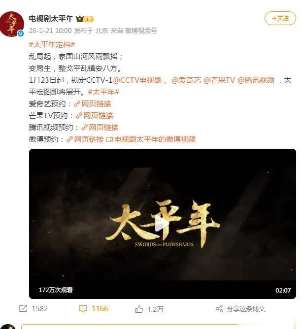 历史剧《太平年》最终定档2026年1月23日央视一套黄金档,但因首周跳集排播、五代十国题材稀缺性与主演阵容突破性演绎,引发观众热议。